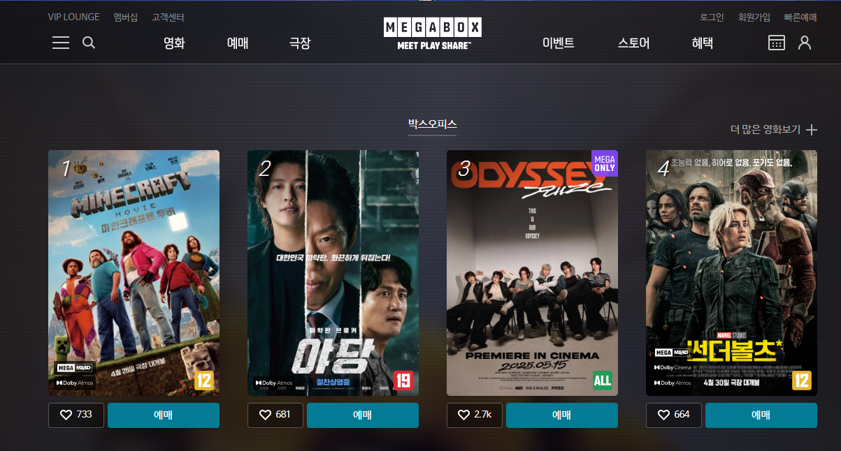 1. 메가박스 공식 홈페이지