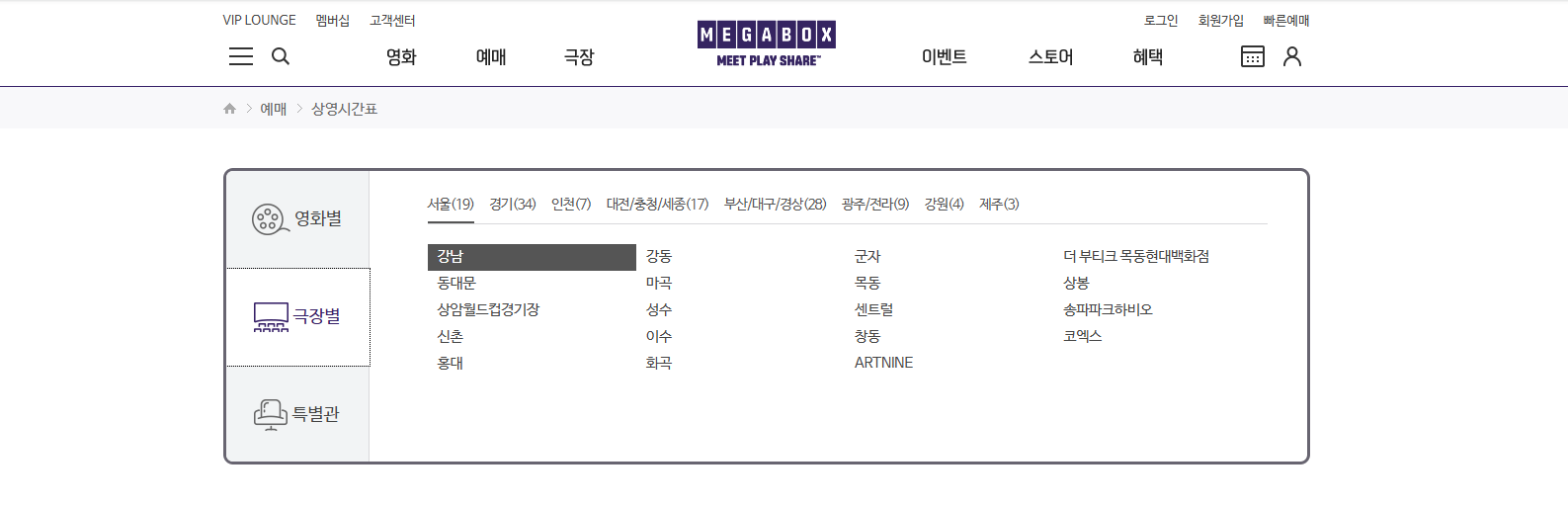 메가박스 상영시간표 확인 방법
